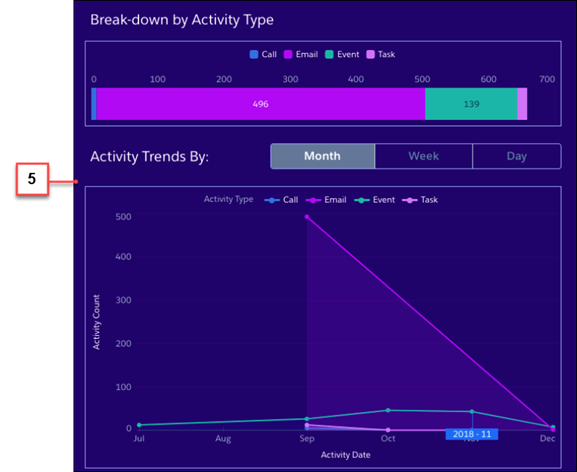 Last is the addition of the Activity Dashboard which shows a summary of sales activities that were added to Salesforce manually, and by Einstein Activity Capture. These metrics are available through the Analytics app in Setup.