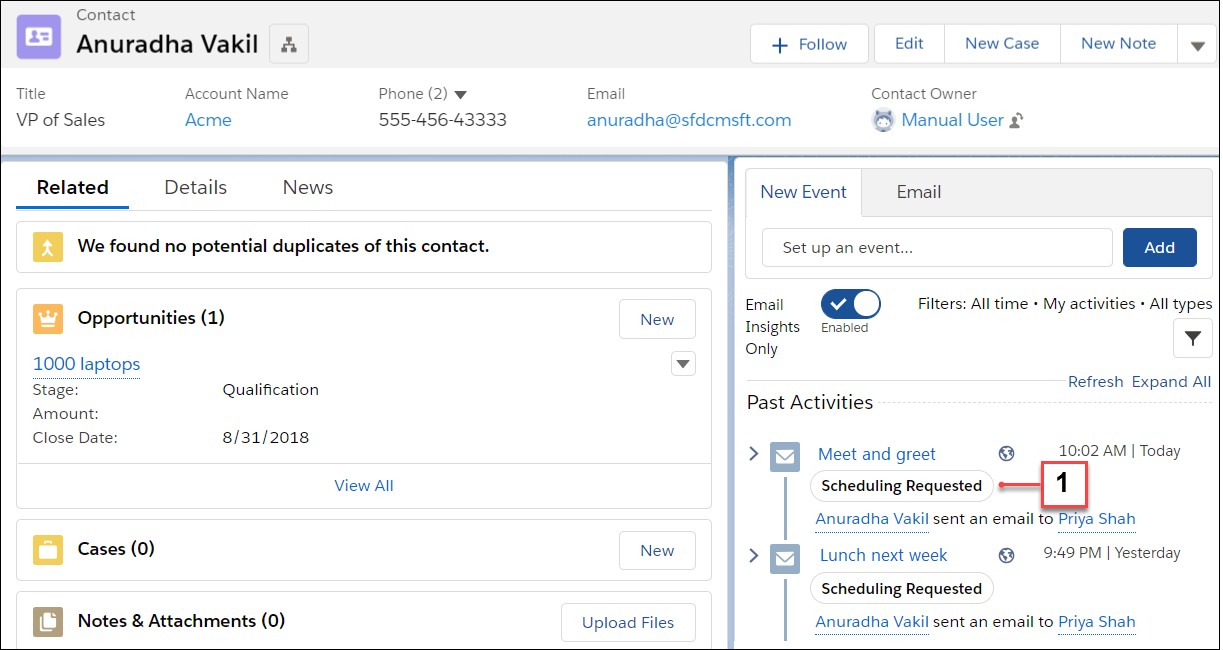 Perhaps one of the cooler benefits to Einstein Activity Capture is the use of calculated activity metrics. Because Salesforce analyzes the activity data using Einstein AI, Salesforce calculates some interesting metrics including Last Activity Date, Inactive Days, and Last Call Date. Here's a demo.