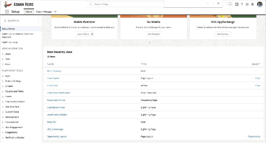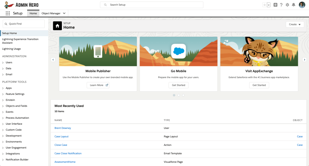 As an Administrator, most of your time will be spent behind the scenes in Setup. Setup allows you to manage the entire Salesforce org.