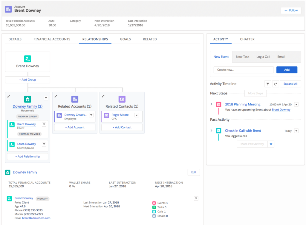 Households may be somewhat of a foreign concept to wealth firms migrating from a CRM like Redtail or Junxure because the Households (or Families as its called in those systems) serve as a simple relationship tool. No data is aggregated to the Household in these other CRMs and users don't interact with the Household in Redtail or Junxure like they do in Salesforce. Redtail and Junxure puts the client record front and center whereas Salesforce wants the Household front and center.